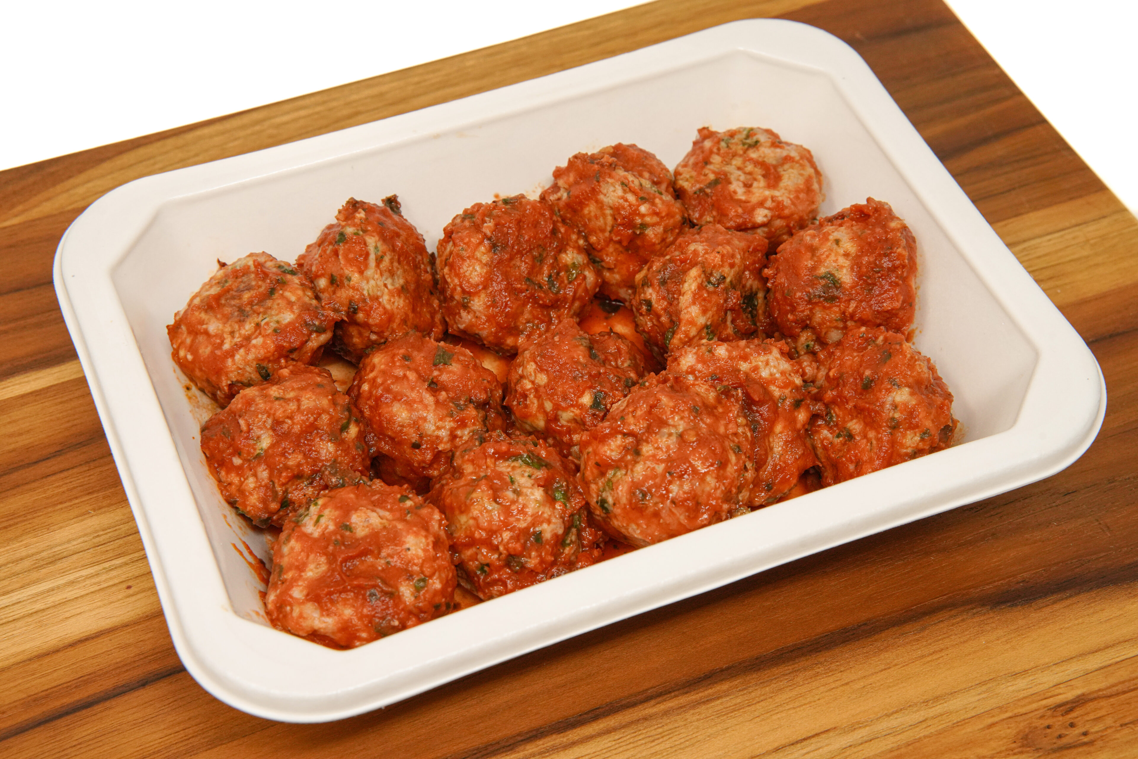 Bulk container of juicy Italian turkey meatballs, made with lean pasture-raised ground turkey, breadcrumbs, eggs and Italian seasonings. (15 meatballs per container).