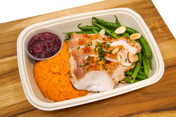 Pasture Raised Turkey Breast w/ Sweet Potato Mash (or Honeynut Squash), Almond Haricot Verts & Cranberry Sauce