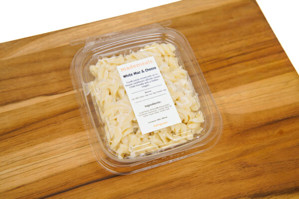 Fusilli pasta mixed with an in-house cauliflower alfredo sauce. Child friendly with a hidden veggie! Served in an 8oz clamshell container.